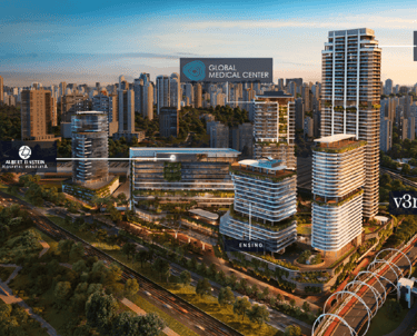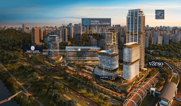 Localizado na Zona Sul de São Paulo, às margens da Marginal Pinheiros, o Parque Global é o maior complexo imobiliário da América Latina, com investimento estimado em R$14,2 bilhões. Desenvolvido pelo Grupo Bueno Netto em parceria com a Benx Incorporadora, o projeto integra residências de alto padrão, um shopping center, um hospital do Albert Einstein, um centro de inovação educacional e o Hotel V3rso, da renomada rede Emiliano